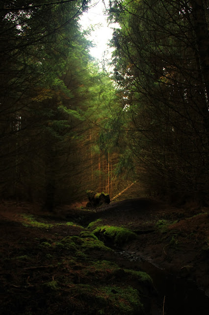 Droplets of drizzle precariously clung to the sharp, needle-like leaves of the pine trees. Fungi burst through the undergrowth and the rotting remains of wood, as they attempt to spread their spores across the forest.